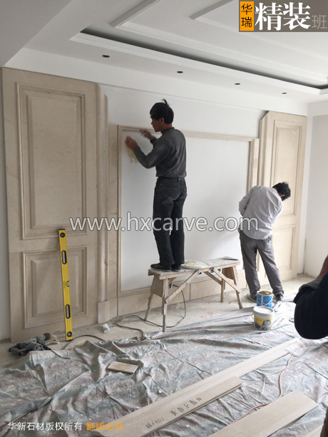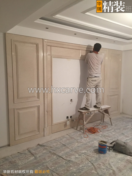 石材電視背景墻安裝中