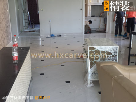 客廳石材地面拼花結晶中
