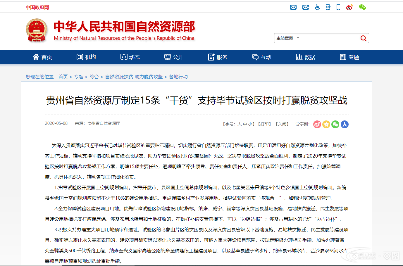 為深入貫徹落實習近平總書記對畢節試驗區的重要指示精神,切實履行省自然資源廳部門幫扶職責,用足用活用好自然資源差別化政策,加快補齊工作短板,推動支持舉措和項目實施落地見效,助力畢節試驗區打好深度貧困殲滅戰,堅決奪取脫貧攻堅戰全面勝利,制定了2020年支持畢節試驗區按時打贏脫貧攻堅戰工作方案,明確15項主要任務,逐項明確了牽頭領導、責任處室和責任人,壓緊壓實政治責任和工作責任,加強統籌調度,抓具體抓深入,推動各項工作細化落實。