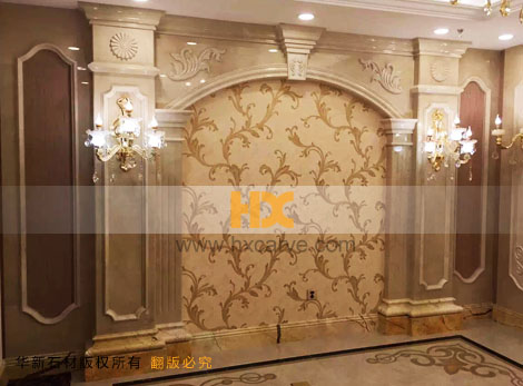 石材背景墻、石材電視墻、沙發背景墻、餐廳背景、是家庭硬裝裝修中比較關注的部位。通常電視背景墻,沙發背景墻的裝修裝飾方案影響整個裝飾風格。石材背景墻通常的組成構件有石材裝飾線條、石材斜鋪、石材壁柱、石材浮雕等等。我們的設計師可以為您提供量身定制的背景墻設計方案。并且我們可以提供測量、設計、加工、運輸、安裝的“一條龍服務”。